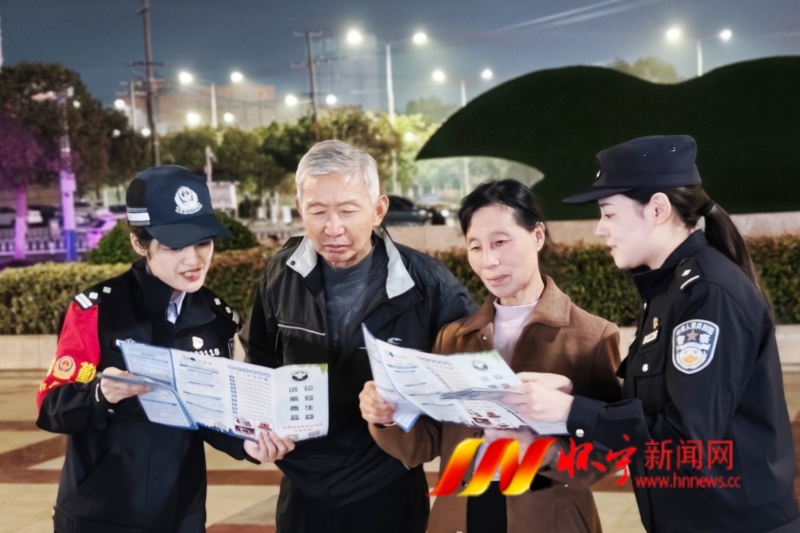 10月29日晚,县公安局高河派出所联合治安大队、禁毒大队在市民广场开展安保巡逻,同步搭建“平安小摊”,将安全知识与人间烟火气巧妙结合,吸引众多群众前往驻足观看。民辅警穿梭在人群中,通过讲解宣传册内容和真实案例,向市民科普禁毒和防诈骗的相关知识。朱丽 丁静 摄