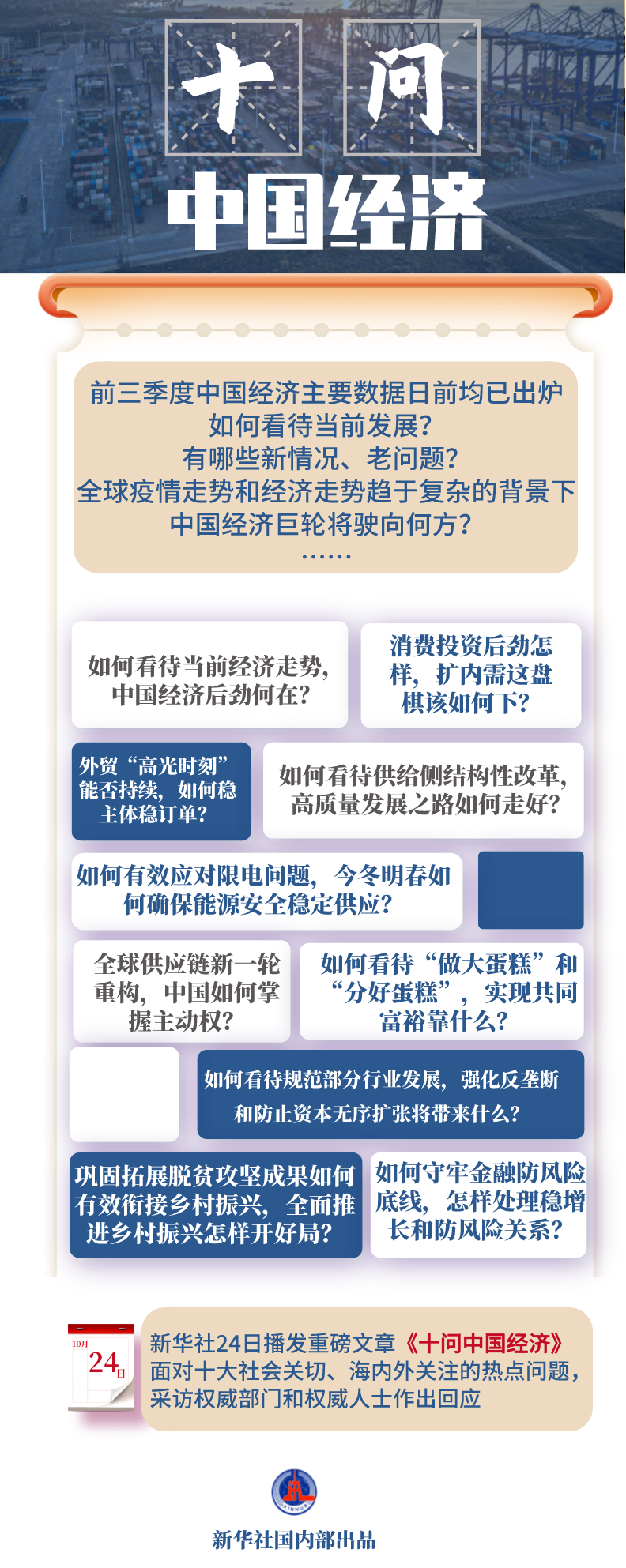 新华社24日播发重磅文章《十问中国经济》,面对十大社会关切、海内外关注的热点问题,采访权威部门和权威人士作出回应。