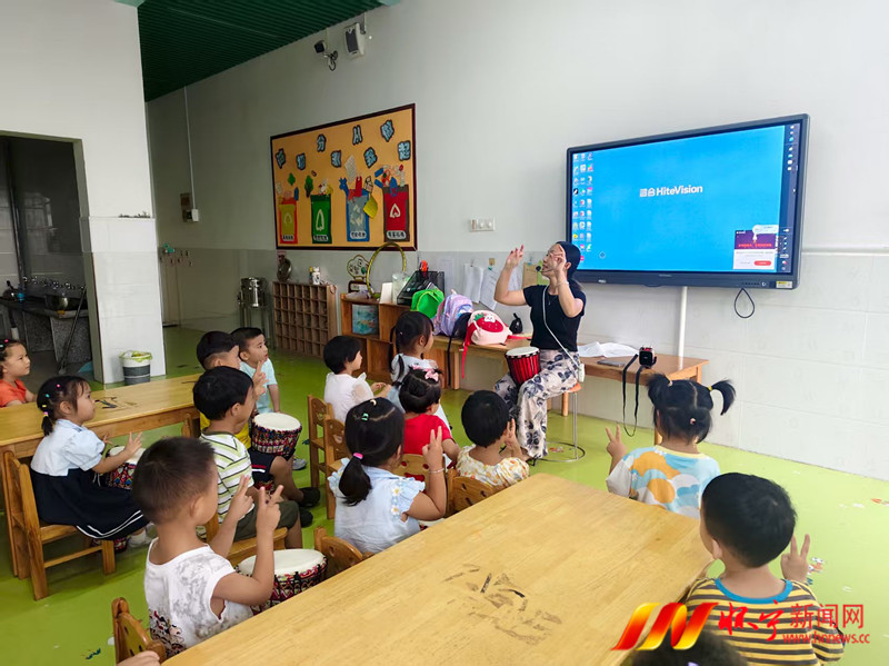 本网讯 下午四点半,本是幼儿园的寂静时刻,江镇中心幼儿园的音乐教室却传来阵阵欢快的鼓点声。二十几个孩子围坐一圈,小手有节奏地拍打着非洲鼓,脸上洋溢着专注而快乐的笑容。这不是普通的课堂,这是幼儿园秋季开学后推出的延时服务带来的温馨场景。