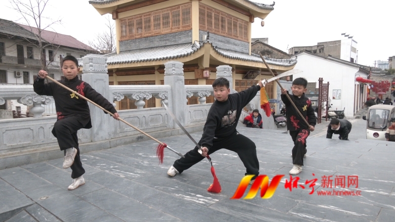 在城区一处院落中,何九祥师傅常利用闲暇时间指导孩子们习武。他手把手传授技艺,细致纠正每个动作,将自家传承的武学倾囊相授。作为怀宁北派武术传承人,何九祥感慨道:“小时候是父亲教我的,我们练的武是北派的传统武术。我们石牌以前是文化古镇,包括戏曲、武术、老工艺等方面都要传下去,所以让孩子们把这些传承下去,对我们以后子孙万代都有益的。”其动作身法融汇传统戏曲武戏与中医理法,充分展现出石牌“戏武相融、刚柔并济”的独特文化魅力。