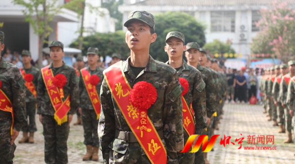 仪式上,新兵胸戴红花、肩披绶带、队列整齐、精神抖擞,在亲友和群众的见证下,伴随着雄壮嘹亮的《强军战歌》,豪情满怀的儿郎,踏上了军旅新征程。