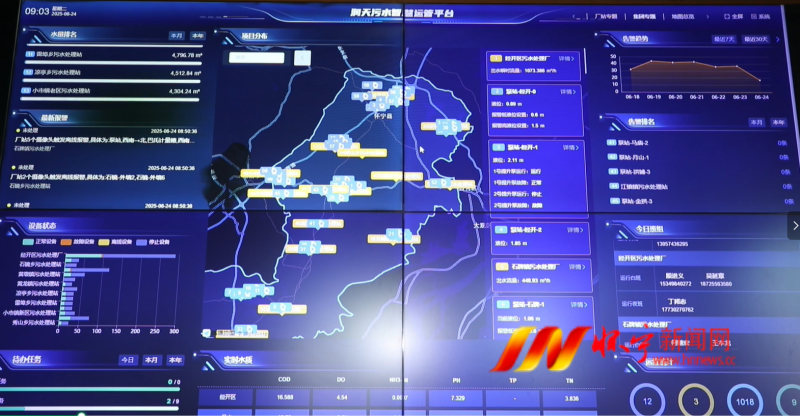 在县城乡污水智慧化云平台管理中心,大屏幕上实时显示着分散在全县各地的污水处理设施运行数据。“这是我们治水的‘智慧大脑’。” 工作人员汪琼琳一边操作系统一边介绍,“依托物联网、大数据技术,我们可以远程实时监测各站点的流量、液位、设备运行状态、出水水质等关键数据,并能实现智能预警与移动运维调度。”