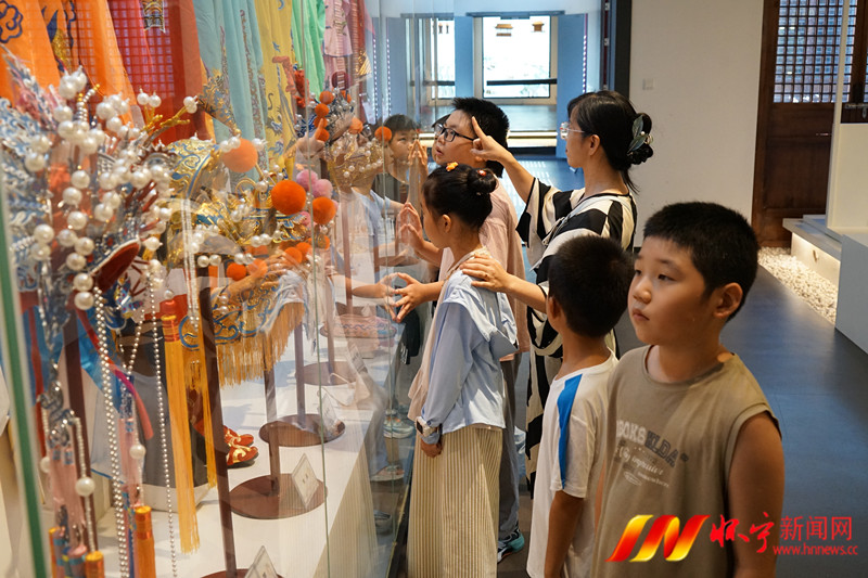 在石牌徽班博物馆,详细地讲述了石牌戏曲文化的来龙去脉。徽班博物馆汲取了徽派建筑中的砖雕、木雕、石雕等造型,外形简洁大气,博物馆中展陈着盔帽、戏服、木剑、令牌、黄花梨二胡、戏曲唢呐等珍贵文物,暑假期间,这里也迎来了参观热潮。“没想到在一个小镇上还能看到这么大气的戏曲文化博物馆,非常地震撼。”来自江西旅游团游客张先生说道。