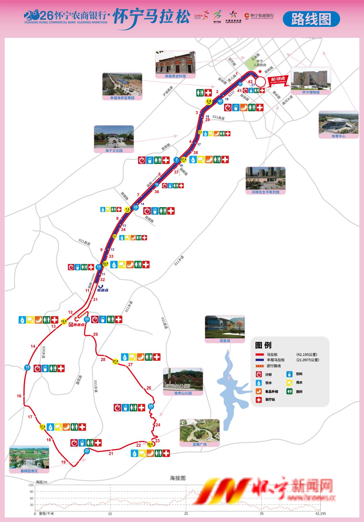 市民广场(起点)→稼先路→育儿路→237省道→秀山乡路口→半马折返点→237省道→育儿路→稼先路→市民广场(终点)。