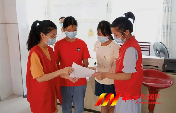 平山镇48名暑期在家大学生主动参与疫情防控进来,协助卫生院做好宣传咨询、人员分流引导、维持现场秩序、登记、留观等工作,提高了疫苗接种效率。并创新工作方法,对排队等候和留观人员,结合“防溺水、科普中国、医保注册、治安保险、政务服务地图”等工作,开展宣传、注册、激活等工作,深受群众欢迎。图为8月6日下午大学生们在维持疫苗接种现场秩序。檀志扬 杨兰兰 摄