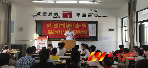 此次中医药文化进校园活动邀请到安徽省名中医、清河乡卫生院院长何晶晶为学生授课,为了让孩子们更加直观地体验中医的功效,何晶晶以中小学生经常遇到的感冒、咳嗽等疾病为切入点,现场教给他们按摩治疗感冒的穴位,让同学们在兴趣的指引下,积极主动地了解中医药在流感防治等方面的优势,让同学们通过感受中医、学习中医,更加了解中医、认同中医,在丰富中医健康知识的同时,也培养了他们积极健康的生活方式。(通讯员 毕铭华)