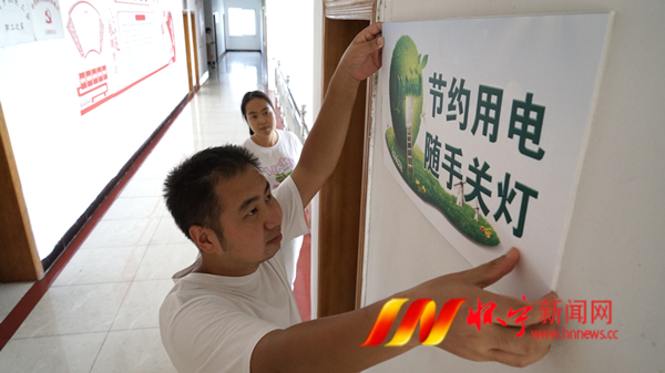 9月28日,清河乡机关干部在张贴节约用电温馨提示,该乡干部职工发挥先锋模范作用,主动担当作为,带头采取措施节约用电。怀宁县引导干部职工节约、错峰用电,最大限度地降低机关能源消耗,共同为文明、节约型机关建设奉献一臂之力。檀志扬 陈金霞 摄