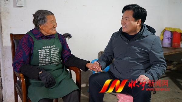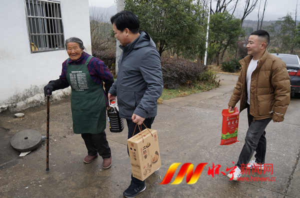 1月24日,全国劳模、月山镇复兴村党支部书记查正严和往年一样,带上大米、油、鸡蛋等慰问品,来到本村93岁五保老人黄来香家中,让老人倍感温暖。查正严凭着自己勤劳的双手,近年来累计投资3000多万元将4700亩荒山变成了绿色银行,带动村集体增收和农民就业致富。从2008年当选为村干后,村里的困难群体,查正严都记在心里,每年他都要多次逐户走访老弱病残、五保户、低保户等困难家庭,将符合条件的困难群众及时纳入低保和五保,切实解决他们吃饭、穿衣、住房、取暖等方面的困难。他还每年还自己掏腰包购买生活用品,送到全村困难群众手中。檀志扬 摄
