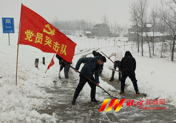 2月7日,突降大雪,积雪冰冻路面给群众安全出行带来诸多隐患。石牌镇党员领导干部冲在一线,各村(社区)党员干部、志愿者迅速行动,清路除障,铲雪除冰,畅通群众出行绿色通道。昂海波 摄