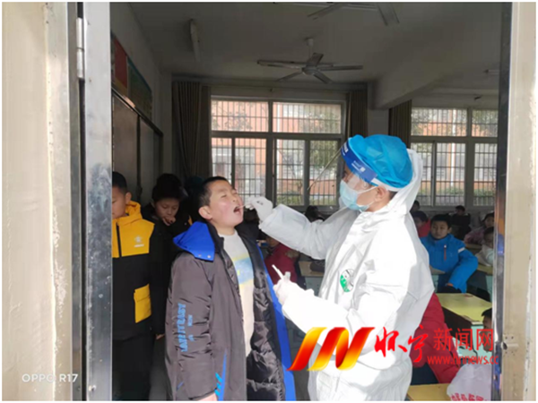 2月15日是新学期开学第一天,江镇镇组织专业医护工作人员到中小学校为师生集中开展核酸采样检测工作,确保安全开学、安心上课。刘庆生 摄