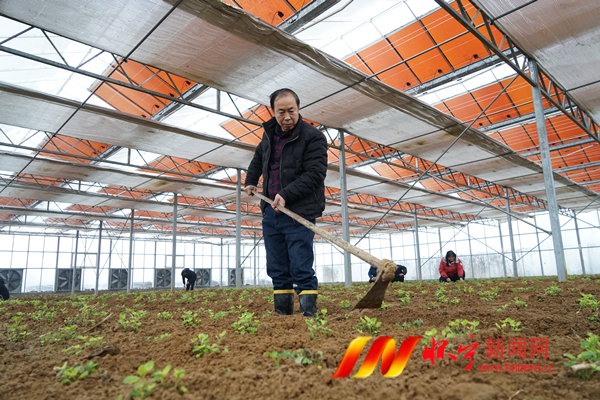 2月18日,黄龙镇黄龙社区农光互补玻璃温室里,村民们在为种植的优质马铃薯苗除草。黄龙镇建成占地2000平方米的农光互补玻璃温室,是农业种植和光伏发电结合的新型温室,既满足了植物生长的需要,又实现了光电转换,可为村集体经济每年获得6万元以上的固定收益,同时也为节能减排、环境保护发挥了重要的作用。 檀志扬 刘龙 摄