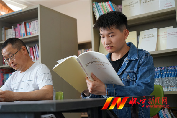 2022年3月22日,平山镇机关干部利用空闲时间在图书室看书。我县倾力打造好“15分钟阅读圈”这项民生工程,将图书室建在老百姓家门口,城乡居民15分钟内就能在家门口阅读到图书,极大地丰富了老百姓的文化生活。(檀志扬 操振东 摄)