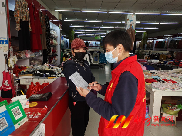 4月1日,在洪铺街道锦绣小区,网格员和青年志愿者们挨家挨户走访,进行外来人员信息排查工作。