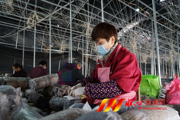 4月18日,村民在菌种套环进行发酵。石镜乡邓林村建成1万棒木耳生产基地,年可增收村级集体经济30万元,小木耳做成了大产业。同时带动本地10多名村民在家门口就业增收。檀志扬 刘铮 摄