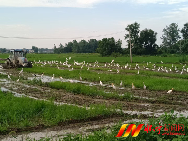 近日,黄龙镇康宁村村民在耕田,成群的白鹭在刚刚翻耕的农田里,或觅食、栖息,或嬉戏、飞舞,构成一幅和谐的田园生态画卷。近年来,黄龙镇围绕“建设生态宜居黄龙”发展目标,以乡村振兴为抓手,坚持生态优先、绿色发展,严格落实河长制、林长制,推动“山水林田”全要素配置组合、综合治理,持续推进高标准农田建设,夯实农业发展基础,促进水岸风貌持续改善,乡村田园生态环境取得了明显的改善。陈锐 刘龙 摄