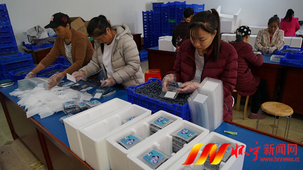 6月20日,凉亭乡磨山村村民在包装蓝莓。磨山村大力发展电商经济和蓝莓产业,今年通过电商平台销售蓝莓10余万公斤,实现村级集体收入超过100万元,电商经济成为乡村振兴的“支点高地”。檀志扬 何宏峰 摄
