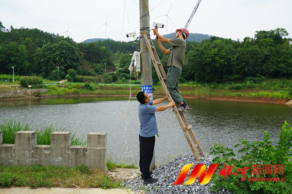 7月21日,石镜乡马山村技术人员在当家塘安装摄像头。石镜乡建立“人防+技防”立体联动防控机制,织密织牢防溺水安全防护网,对全乡水库、当家塘等水域安装防溺水“电子警察”,通过后台联网,“电子警察”能够全天候对河段上的涉水人员实施监控管理。实现了对人力观测不到水域的全方位监控,进一步夯实防溺水工作“安全堤”。檀志扬 刘铮 摄