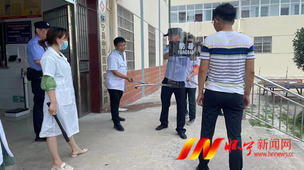 近日,雷埠乡卫生院邀请辖区派出所民警前来开展反恐防暴培训演练。通过现场情境模拟演练,切实提升了卫生院职工反恐防暴基本技能,让医务人员在紧急情况时能够正确保护患者、防护自救。 包俊根 陈汪胜 摄