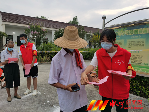 与刘鑫鑫一样,目前还在读高二的高中生张福俊主动报名参加了这次志愿服务,在检测点负责维持现场秩序,同时对前来排队参加核酸检测的村民发放口罩和《致全镇人民的一封信》,现场不厌其烦地引导村民正确佩戴口罩、保持一米线、做好个人防护等相关知识,在他看来,这是这个暑假做的最有意义的一件事。