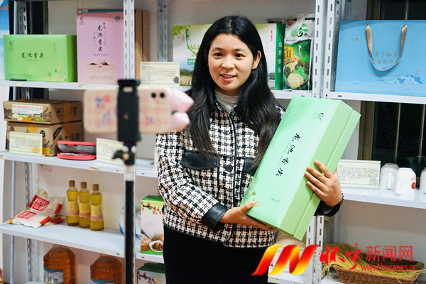 11月4日,清河乡科技特派员陈紫瑞忙完一天工作结束后,利用晚上休息时间为村民代言,推销本地优质农产品。今年我县共选派232名科技特派员,他们利用自身优势,结合“互联网+农村科技特派员”工作机制,积极融合微信、短视频、直播、电商等新手段,开展涵盖产前、产中、产后全方位的全产业链专题培训、技术指导、直播代言等活动,拓宽农产品销路,帮助农民增收,助力乡村振兴。檀志扬 陈金霞 摄