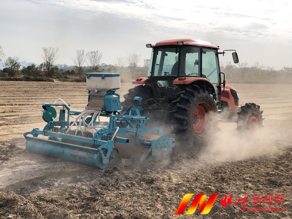 据了解,此次油菜秋播采用了全新的吹气式微电脑精量播种机,通过气泵把种子吹送进土壤,按照相应的株距直播到土壤里,这样播种精度更高,均匀性也更好。利用这台多功能播种机,两天时间就能完成300亩油菜的播种任务。张冰 谢皖峰 摄