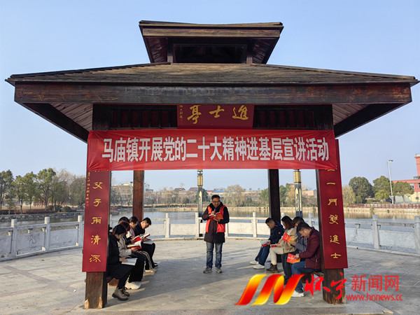 1月10日,在马庙镇合一社区广场上,10多名干部群众齐聚一起,全神贯注地聆听社区党总支书记张李生宣讲党的二十大精神,畅谈幸福新生活。马庙镇依托遍布全镇的新时代文明实践所、站,组建由老党员、老村干、乡贤能人、乡土专家等组成的宣讲团,走进群众身边、深入田间地头,以群众喜闻乐见的形式,广泛深入开展宣讲活动,积极举办文明实践活动,持续掀起学习宣传贯彻党的二十大精神的热潮。檀志扬 丁浩浩 摄