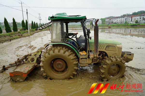 4月13日,江镇镇日新村种粮大户何锐利用大拖整田,准备种植早稻。眼下,我县广大种粮大户抢抓农时,加大力度做好春耕春管工作,夯实全年粮食稳产增产基础。檀志扬 刘庆生 摄