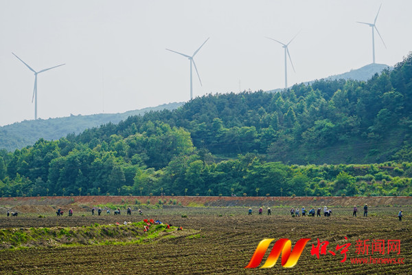 5月23日,月山镇复兴村村民在种植紫薯苗。近年来,月山镇以调整农业产业结构为抓手,大力发展“一村一品”,做大做强蓝莓、紫薯、葡萄、草苺等特色产业,推进强村富民,助力乡村振兴。檀志扬 洪胜武 摄