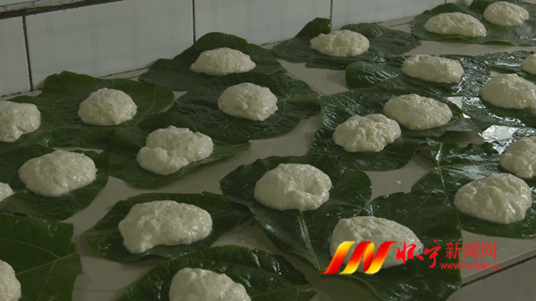 一大早,在凉亭乡敬老院,护工董帮霞正与青年志愿者忙着和粉做粑。这个麦粑由面粉、白糖、发酵粉、酵母等原料组成,最关键的是下面衬底的青檀皮树叶子,又名粑叶子。等搓到盆中的面粉充分胀发时,迅速用手将面搓成团,逐个放到事先摊好的“粑叶”托上。“一个小时后,像那个蜂窝状,才能将面粉放一起揣,揣了以后扦成这个状态,一个小时后,发起来了就可以蒸了,这个有粑叶香。”董帮霞边做边说。