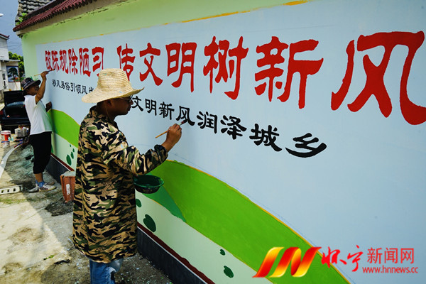 7月4日,画师在平山镇农村围墙作画。一墙一文化,一村一风景,随着美丽乡村建设不断深入推进,平山镇坚持做“活”村居文化,育“实”乡风文明,以“文化墙”作为传播社会正能量的有效载体,充分利用广场墙壁、农户住宅墙面,打造特色文化墙,有效拓展了文明宣传新阵地,使“文化墙”变成“文化强”,绘出乡村振兴“精气神”。檀志扬 操振东 摄
