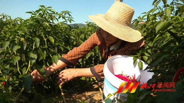 辣椒种植属于劳动密集型产业,从种植、田间管理到采摘都需要大量的劳动力,这也给周边的村民创造了就近就业的机会,持续稳定带动他们增收致富。“我家就在这附近,每年能做到100多工,一年能挣到八九千块钱,业余时间还可以带孙子。”采摘村民陈富球高兴地说道。