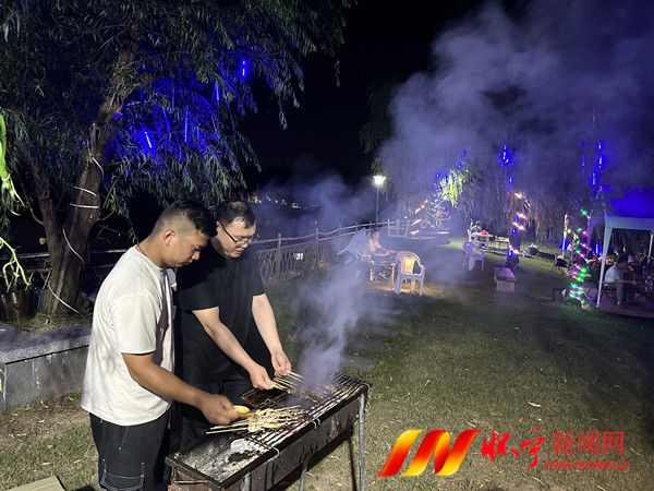 本网讯 8月12日晚,高河镇查湾村夜市餐饮区霓虹闪烁、色彩斑斓,动感的音乐与成片的光影花海交相呼应,游客尽情烧烤、游玩,尽享乡村夜生活。我县以扩大消费、服务民生为导向,以“点亮夜经济、释放新活力”为目标,千方百计推动夜经济发展,打造出一批独具怀宁特色的“人间烟火气”,吸引大批群众前来“打卡”。檀志扬 刘晓勇 摄