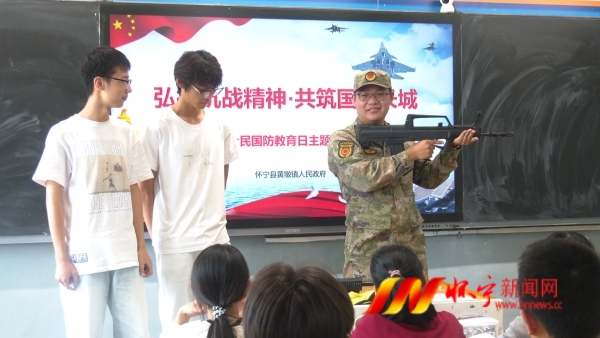 近日,在秀山中学,黄墩镇武装部长身着笔挺戎装,身姿挺拔地站在讲台上,一边演示仿制枪的基本操作规范,一边结合历史与现实案例,向师生们普及国防装备知识,讲述了抗战时期,中华民族团结一心、抗击侵略的英勇事迹,进一步激发了大家的国防意识和爱国情怀。