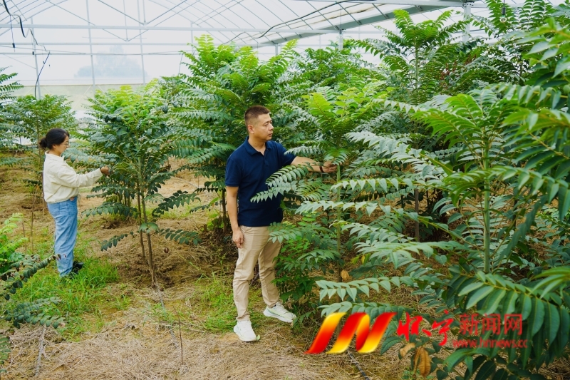 10月8日,雷埠乡白桥村村干在查看香椿长势。今年,白桥村结合项目资金,投资200余万元,建成4栋大棚种植香椿,预计年增收集体经济30万元以上,同时带动本地几十名村民在家门口就业增收。檀志扬 郝子侠 摄