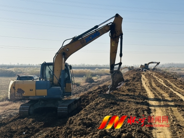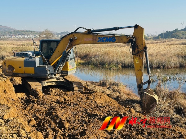 11月26日,江镇镇盘石村塔塞圩,挖掘机在加固修复堤坝。盘石村结合项目资金,投入近100万元对全长2公里的塔塞圩进行土方加固、拓宽,确保千亩良田旱涝保收。檀志扬 刘庆生 摄