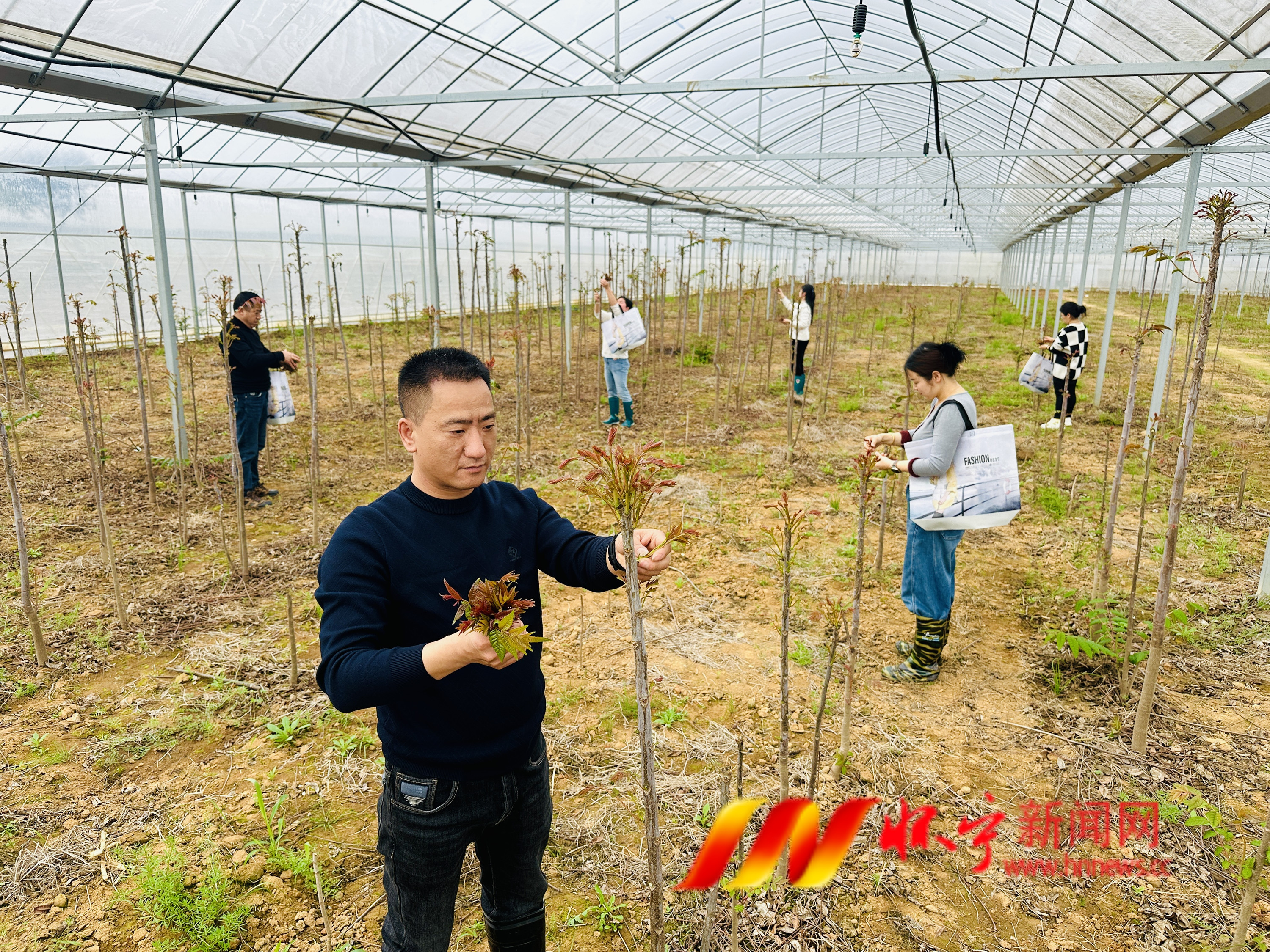 棚内香椿鲜,棚外希望浓。一簇簇鲜嫩的香椿芽,不仅承载着春日的滋味,更承载着土塘村村民增收致富的期盼,成为乡村振兴路上的“香饽饽”,奏响了产业增收的春日乐章。(檀志扬 郝子侠)