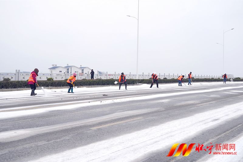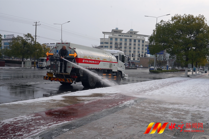 “为保障市民出行安全、城市交通畅通,县城管局组织市政、园林、环卫、执法大队及相关作业公司,共出动五百多人次,开展扫雪除冰作业。以最快速度扫清道路障碍,切实守护群众出行平安与城市正常运转。”县城管局环卫处党支部副书记李结才说。