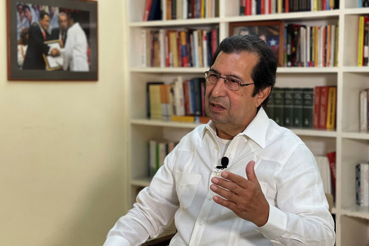 4月1日,委内瑞拉统一社会主义党副主席、委内瑞拉驻古巴大使阿丹·查韦斯在古巴首都哈瓦那接受采访。新华社发(委内瑞拉驻古巴使馆供图)