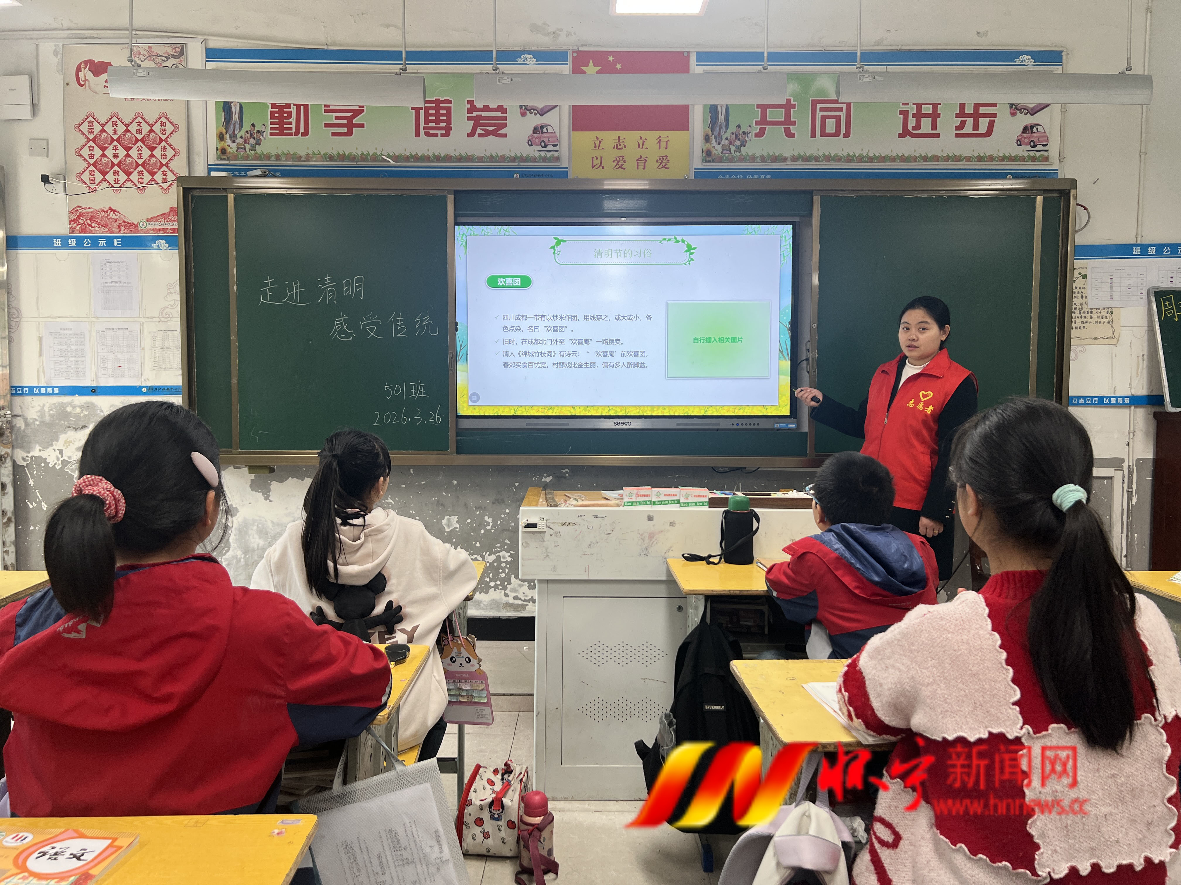主题班会环节同样精彩纷呈,青年志愿者通过PPT课件生动讲解清明节的由来、介子推与寒食节的典故,阐释其由寒食、上巳等节日融合演变的过程,让学生明白清明兼具自然节气与传统节日的双重内涵。志愿者还介绍了扫墓祭祖、踏青插柳等传统习俗,带领学生品读《清明》等经典诗作,感受传统文化韵味。各班还围绕“文明祭祀”展开讨论,结合春季防火要求,学生们一致表示将摒弃焚烧纸钱、燃放鞭炮等旧习,以鲜花祭扫、网络追思等绿色方式寄托哀思。