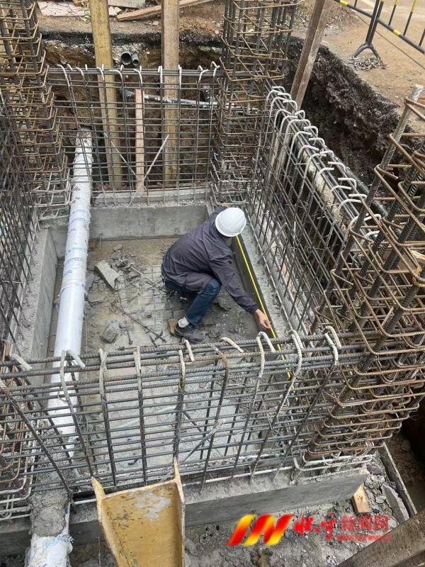 11月12日上午,在言是小区电梯施工现场,伴随着机器的轰鸣声,施工人员正在进行其中电梯基坑浇筑作业,为下一步开展电梯井钢结构的安装和楼体的改造工程做好准备。