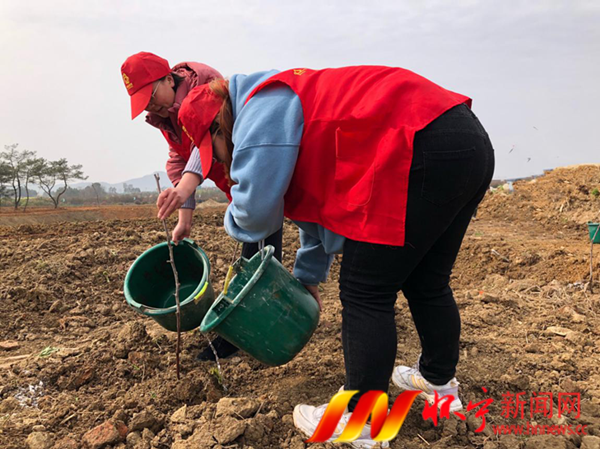 本网讯 近日,腊树镇妇联组织巾帼志愿者开展义务植树活动。现场忙而有序,几人一组,默契配合,80棵树苗整整齐齐地植入树坑,为原本荒芜的土地披上了一件美丽的绿装。余丽丹 摄