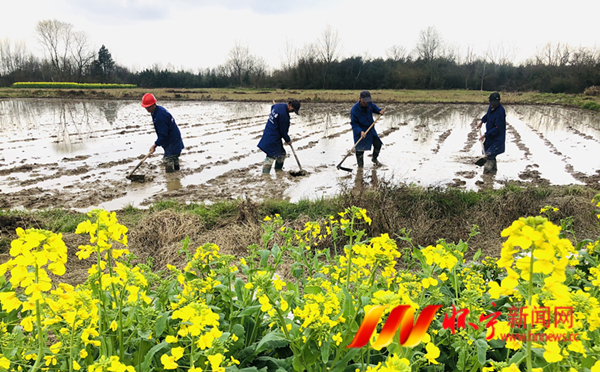 3月10日,小市镇毛安村种粮大户丁文华在平整秧田,为早稻育秧做准备。春耕将至,怀宁县广大农民群众忙着耕地施肥,农技人员深入田间地头开展政策宣传、讲解种植新技术,温室大棚里农民们忙着育苗、浇水……呈现一幅万物复苏、干群携手忙春耕的动人画面。檀志扬 张冰 摄