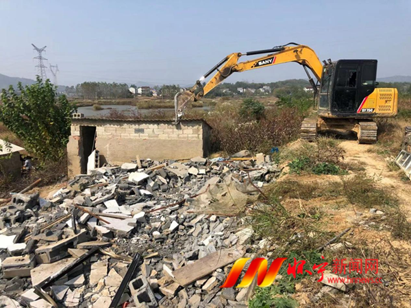 10月29日,江镇镇组织机械对一处临岸的违章建筑进行拆除。为全面落实河湖长制,持续推进河湖治理工作,江镇镇常态化开展河湖“五清四乱”专项行动,全面推深做实河长制。通过建立“河湖长巡河+党员群众监督”机制,对重点地区、重点河湖段全时段监管,对堤坝两岸乱占、乱建、乱采、乱堆等进行全面清理整治。今年以来,该镇共清理乱搭乱建19处,乱堆乱放5处,逐步实现河畅水清、岸绿景美。张庆明 摄
