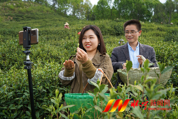 4月7日,在清河乡龙池村茶叶基地,工作人员在直播采茶。近期,清河乡龙池村2000余亩生态茶园相继进入采摘旺季,茶产业已成为当地农民增收、壮大集体经济的支柱产业。特殊时期,当地通过网络直播等方式,让消费者观看采茶、制茶、泡茶等过程,推介当地春茶,帮茶农们“卖货”,实现疫情防控和春茶生产两手抓。