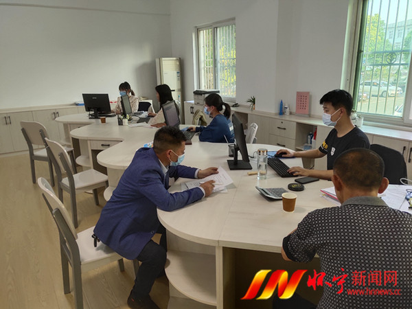 本网讯 4月13日一早,工作人员徐军军第一个来到镇为民服务大厅打开大门,开始打扫室内卫生、烧开水、整治资料。不一会儿,其他几名工作人员全部准时上班,开始了一天的工作。