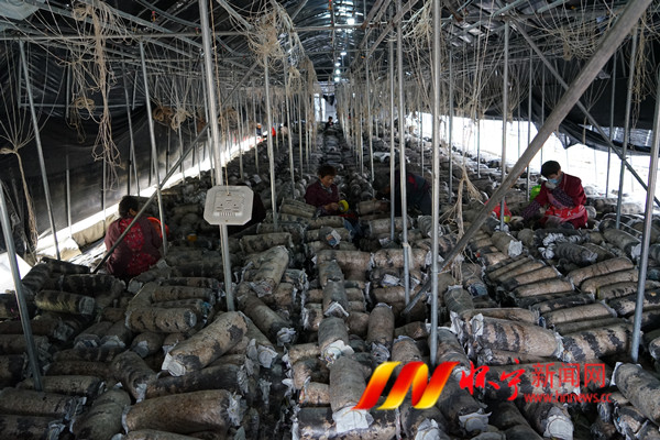 4月18日,村民在菌种套环进行发酵。石镜乡邓林村建成1万棒木耳生产基地,年可增收村级集体经济30万元,小木耳做成了大产业。同时带动本地10多名村民在家门口就业增收。檀志扬 刘铮 摄
