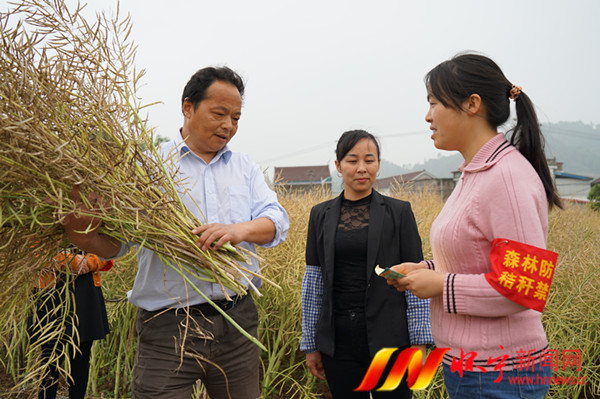 5月12日,清河乡工作人员深入田间地头宣传秸秆禁烧,切实增强广大群众生态环保意识,营造保护生态环境、人人有责的浓厚氛围。时下正值油菜收割季节,为保护辖区良好的空气环境,进一步抓好秸秆禁烧工作,我县突出以宣传引导为重点,紧盯重点区域,加强巡查督导,严格奖惩,出实招确保打赢夏季秸秆禁烧攻坚战。檀志扬 陈金霞 摄