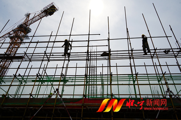 5月24日,工人在加快进度建设雷埠乡服装创业园厂房。雷埠乡精心打造集服装设计、加工、电商物流中心等于一体的现代服装产业园,吸引更多在外地从事服装加工行业的人才“凤还巢”,助力乡村振兴。该园项目一期投资4000余万元,预计今年11月建成投产。 檀志扬 蒋善模 摄