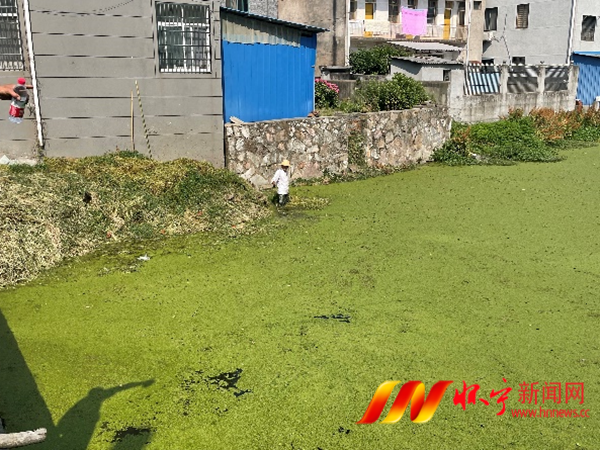 为持续推进人居环境整治,提升社区颜值,石牌镇潘塅社区开展上塅塘垃圾清理行动。清理现场,工作人员拿着镰刀、网兜、扫把、铁锹等清洁工具,对池塘中的生活垃圾、漂浮物、枯烂枝叶、障碍物等进行全面清理。涂成志 摄
