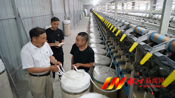 6月16日,小市镇纪委负责人在辖区一家纺织企业,监督和了解就业促进情况。为确保10项暖民心行动见效落地,怀宁县纪委监委积极履行监督职责,一方面直奔现场查看暖民心行动具体推进情况,同时深入走访群众,了解暖民心行动开展情况,让群众了解、关注、支持、监督暖民心行动。檀志扬 刘心贵 摄